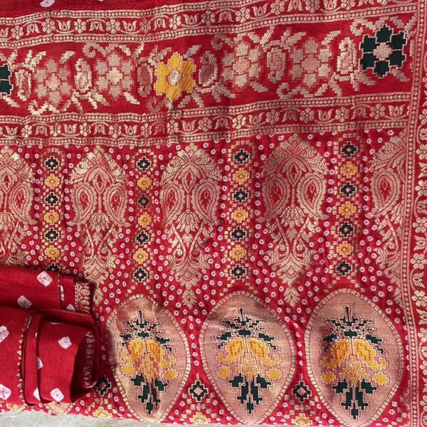 Pure Gajji Silk Bandhani Saree with Traditional Tie-Dye Design