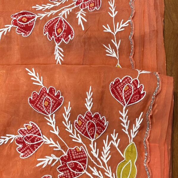 Peach Lightweight Floral Embroidery Saree with Ready-Stitched & Unstitched Blouse – Festive & Party Wear