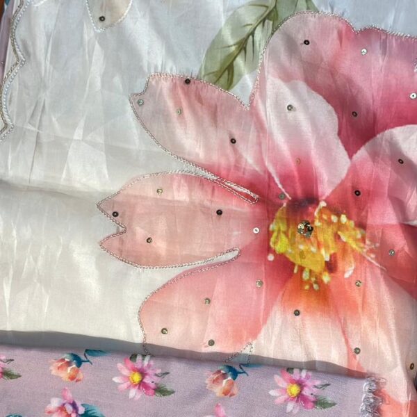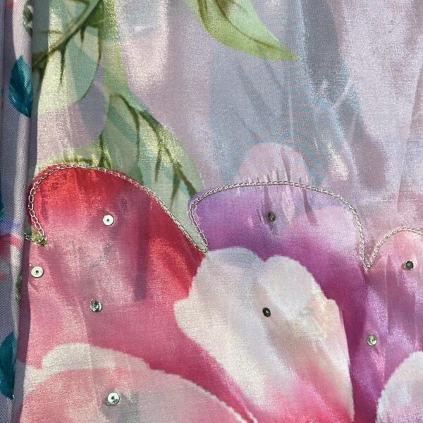 Pastel Floral Shimmer Saree with Sequin Work Border