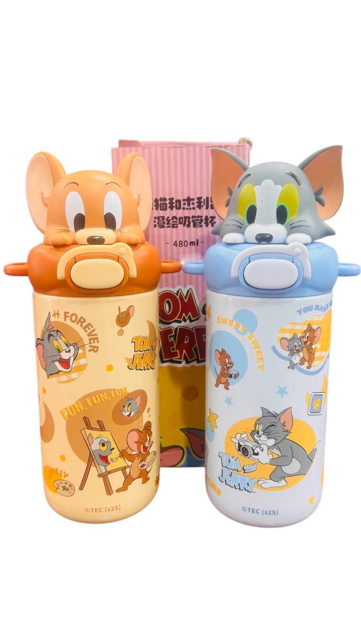 Durable Cartoon Graphics: The bottle body features high-definition, scratch-resistant prints of Tom and Jerry in various fun poses.